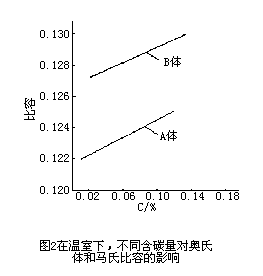 奥氏体不锈钢零件,当冷却至Ms点下在某一温度范围内长时间保温,即会产生不同逆性的马氏体转变,具有体心正方点阵的马氏体是碳在α-Fe中的过饱和固溶体。体心立方配位小,致密度低,而部分碳原子规则化排列占据体心立方点阵(1/2,1/2,0)(0,0,1/2)位置,使晶格沿C轴方向增长,因而马氏体比奥氏体有更大的比容。图2是在室温下,奥氏体和马氏体的比容随含碳量的变化,可见即使含碳量为0.08%的钢,其马氏体的比容比奥氏体的比容约增大4%。在低温下马氏体中碳原子排列规则度增高,其尺寸效应可能比室温更大,这种局部的体积膨胀,并由膨胀引起的应力都会导致零件变形。