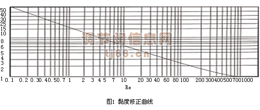 式中 ψ— 黏度修正系数,按Re查图1求得。