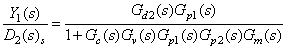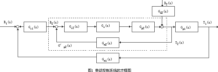 按图1所示串级系统,可以写出二次干扰D2至主参数y1的传递函数