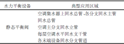 变流量系统中静态平衡阀用于系统初步调节。静态平衡阀保证的不是系统中单个管道的流量值,它要维持的是在系统初调试时,通过静态平衡阀的调节作用,使系统中各个管路的流量比值与设计流量的比值一致,这样当系统的总流量等于设计总流量时,各个末端设备及管道的流量也同时达到设计流量即所需的最大流量,系统实现静态水力平衡。静态平衡阀应当分级设置,表1为静态平衡阀在空调系统中的安装位置。