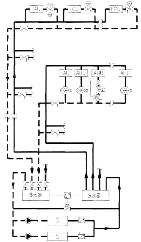 这种系统优点是控制稳定精确;由于末端流量实时满足要求,系统会获得自动的平衡,不需要其它平衡过程;维修时影响的范围小,某一末端设备的关断不影响其它设备的正常使用。缺点是初投资较高。对于一些需要精确控制温度的场所,如计算机房、医院手术室、工业厂房等建筑,可以采用这种方案。