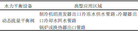 动态流量平衡阀用于系统中需定流量的管路。在系统中某一需流量恒定的设备的分支管路配置了适当的动态流量平衡阀后,该设备即能运行在设计流量状态。如果并联的外网由于变动而造成压力的变化△P在一定范围内(该阀门有效范围),则不会造成流经该设备流量的变化。由此可见,动态流量平衡阀适合安装在冷冻机房冷热源设备处,一方面可以保证机组在额定状态运行,将流量恒定在设计值,从而保护机组,另一方面提高机组的运行效率,使系统运行的水温正常。表2为动态流量平衡阀在空调系统中的安装位置。