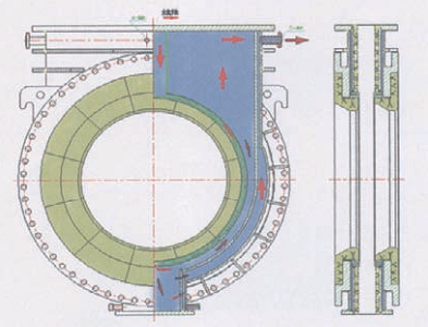 热风阀的使用环境为1000~1400℃左右。在阀门关闭时,热风阀阀板的使用环境,一面1200℃,烟气的一面1400℃。当阀板提起时,阀板要受到交变温度和交变的压力。所以高温及热振是热风阀破坏的关键。而热风直接接触到的接触面都是由耐火浇注料浇注而成,在这样的工作环境下,就要求耐火材料的选用要有优良的抗热振性能、高的耐压强度和高的耐火度。热风阀在热风炉系统中不仅要起到截断和开启的功能,还要有保温和冷却的功能,保温是对热风的保温作用,为了减少热风炉系统的能量损失。冷却是对阀体本身的冷却,为了保护钢结构件温度降低到安全使用范围,以保证阀门本身的使用寿命。