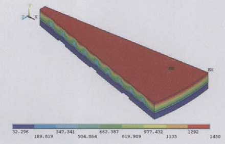 在分析中加载如下主要参数如下:热风温度1450℃,热导率(800℃)0.80W/m·K,耐火浇注料厚度为50mm。