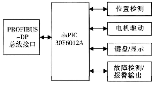 控制器系统硬件包括电动执行机构控制单元和PROFIBUS-DP总线从站接口单元构成,如图2所示。整个电动执行机构设计采用模块化设计,为此采用双CPU的结构方式,系统采用dsPIC30F6012A单片机作为电动执行机构控制单元中央处理器,采用AT89C55芯片,作为总线接口单元中央处理器,电动执行机构控制单元和PROFIBUS-DP总线从站接口单元之间通过串行通讯交换控制与运行状态数据。
