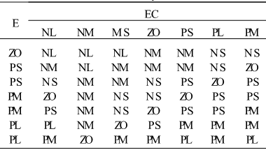 其中E,EC及H的模糊集为:{NL,NM,NS,ZO,PS,PM,PL},NL为负大,NM为负中,其余类推。各模糊集论域根据电动执行器中电机、减速器等配置参数依据专家经验确定。