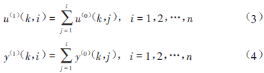 基于光滑离散数据列递增指数规律的思想,生成的数列比原始数列的指数递增规律性要强,并且弱化了原始数列的随机性。因此,对原始数列作一次累加(1-AGO),生成新数列如下: