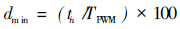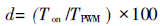 开关阀的控制信号采用PWM(脉宽调制)控制。开启时间Ton在脉宽周期范围内可变,占空比与开启时间的关系为: