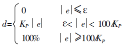 当位置偏差e较大时,为了使执行器迅速地到达设定位置,相应的控制阀应完全打开(快速区);当执行器接近设定位置时,控制阀PWM控制信号占空比随位置偏差相应改变(慢速区);为避免执行器在设定位置附近频繁的轻微振荡,当位置偏差在设定的很小范围(死区)内时,认为执行器到达设定位置,此时关闭控制阀,使执行器定位在当前位置。