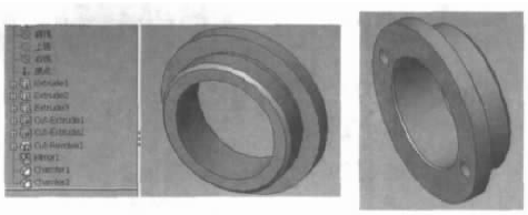 电动调节阀零件结构大多数具有回转体特征,在绘制模型时常用“拉伸”、“旋转”命令。绘制调节阀阀座零件模型如图4所示。